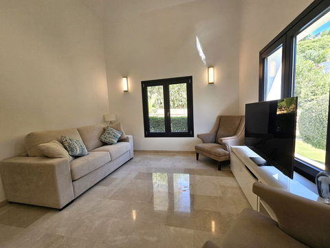 Nestled within the prestigious, gated enclave of Monte Mayor, this newly renovated villa offers a rare blend of modern luxury and traditional Andalucian charm — all just 15 minutes from the vibrant heart of Marbella. Set in a serene country estate with 24-hour security, a restaurant/bar, and a mini-market, the property is perfectly placed for those seeking tranquillity without sacrificing convenience.