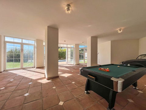 On the lower floor, all the bedrooms—each with an en-suite bathroom—offer privacy and comfort, with direct access to the garden and pool area. This level also includes versatile spaces with great potential for a gym, home cinema, or guest apartment.
