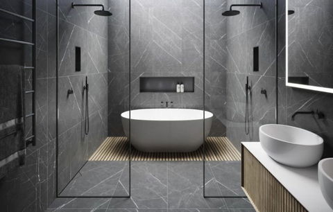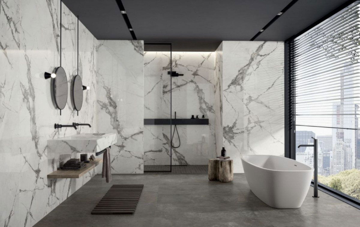 – Bathroom walls with COVERLAM plates (GRESPANIA) 2700X1200 (Colour to choose)