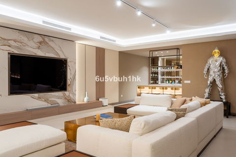 The lower level is designed for leisure and entertainment, featuring a stylish bar area, a comfortable lounge and movie theatre, and two spacious bedrooms, each with its own en-suite bathroom, perfect for family or guests.