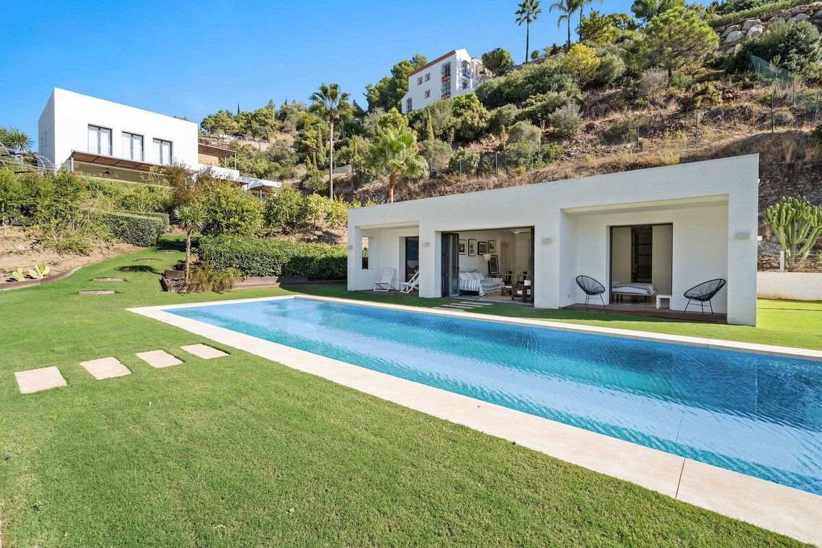 Set on a 3,000 m² plot within the private gated community of El Madroñal, this elegant six-bedroom villa combines architectural clarity with warmth and privacy, surrounded by nature and open views.
