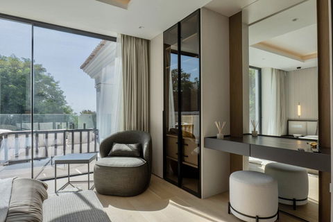 Boasting 7 spacious bedrooms and 8 beautifully designed bathrooms, the villa provides an ideal layout for large families, guests, or those seeking an opulent residence with ample privacy. Every space is bathed in natural light and furnished to the highest standards, ensuring a warm, inviting, and stylish atmosphere throughout.
