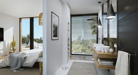 The villas consist mainly of 4 bedrooms and 5 bathrooms. 2 bedrooms with bathroom ensuite on the upper floor, 1 bedroom with bathroom on the ground floor and 1 bedroom with bathroom in the basement.