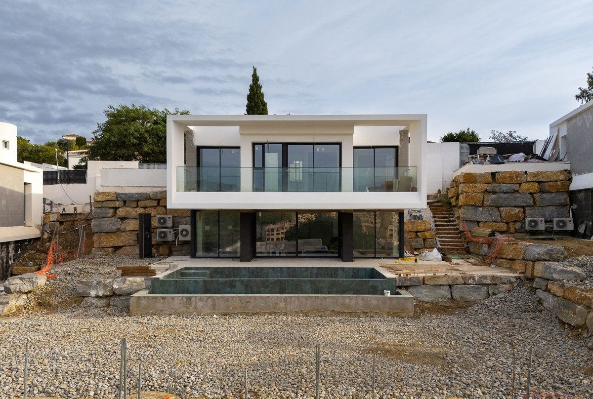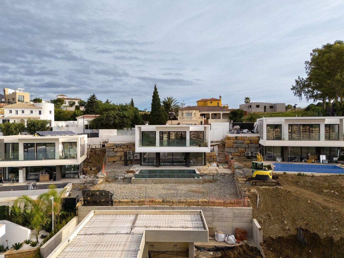 Currently under construction is this beautiful 4 bedroom villa for sale in Valle Romano Green Estepona. This beautiful project offers a selection of 8 exclusive southwest facing villas overlooking the golf course and the Mediterranean Sea. They are distributed over 3 levels, with 3 bedrooms on the upper floor, and 1 bedroom on the lower floor, plus a magnificent basement of 40 m2 with many possibilities for adaptation, bedroom, cinema room, games room, as well as having private terraces offering incredible views. Each villa sits on individual plots of almost 500 m2 and has more than 142 m2 built. This beautiful villa is characterised by its luminosity, large sunny terraces and a private garden with a magnificent saline water swimming pool.
