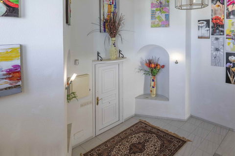 Step into the villa and be captivated by the two bright living rooms, which are connected by an impressive large atrium. This unique architectural design allows for an abundance of natural light, creating a warm and inviting atmosphere in the living spaces. The enclosed kitchen offers the opportunity to easily convert it into a modern open-plan kitchen, perfect for culinary enthusiasts.
