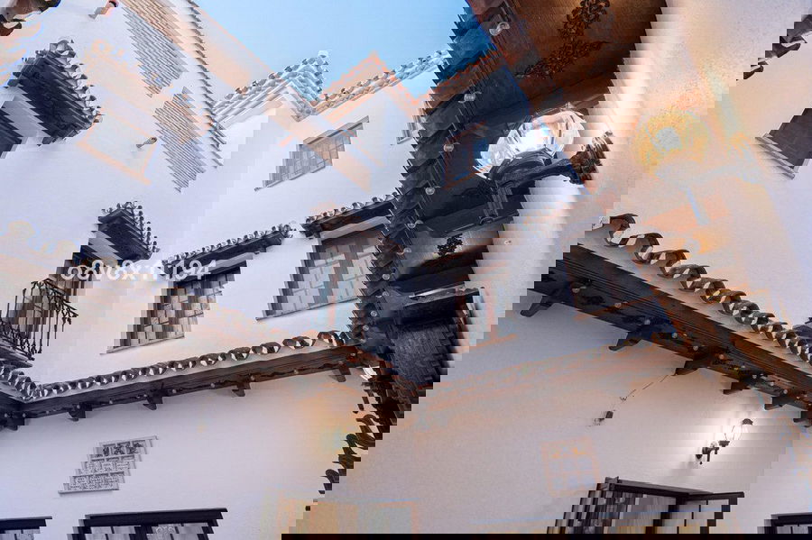 The patio railings are from the 18th century, unwelded and rehabilitated, and in the upper part a coffered ceiling made of carved Teak wood, specially designed for this property.