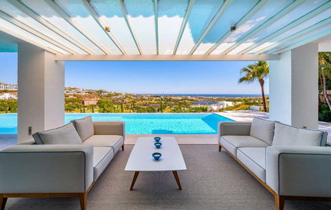 Located front line to the golf course, the villa enjoys proximity to amenities, transport links, and a variety of recreational facilities. It is conveniently close to the beach, shops, schools, and the vibrant towns and ports of the region. Recently renovated, this villa combines modernity with accessibility, making it suitable for all, including those with mobility needs. With its enviable location, stunning views, and exceptional features, this property truly represents the pinnacle of luxury living in the Costa del Sol.