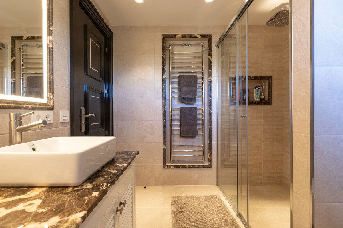On the first level there are 2 large bedrooms each with en-suite bathrooms and share a large, open, south facing terrace with exceptional views.