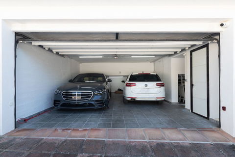 Large 2 car garage, with automatic door, which gives internal access to the villa, storage area, laundry room and machine room where the technical installation can be found.