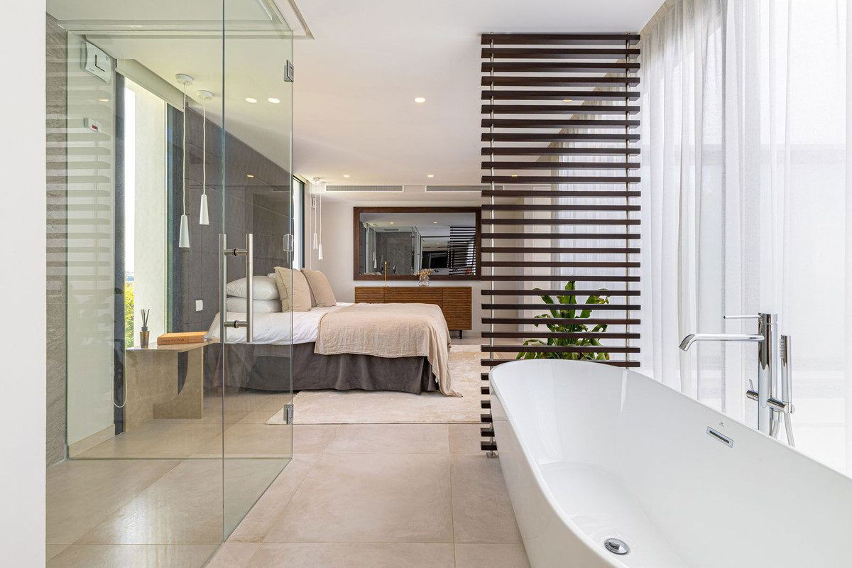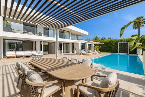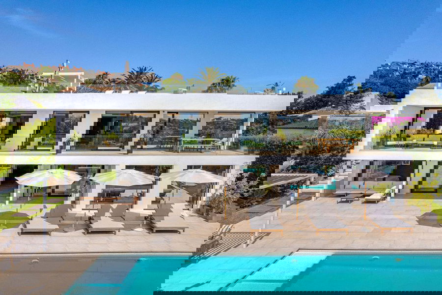 Introducing this fantastic villa, a striking frontline golf villa that redefines modern Mediterranean living. Nestled in one of Marbella's most prestigious enclaves, this exceptional residence fuses architectural sophistication with effortless comfort, creating a home that's both visually stunning and remarkably functional.