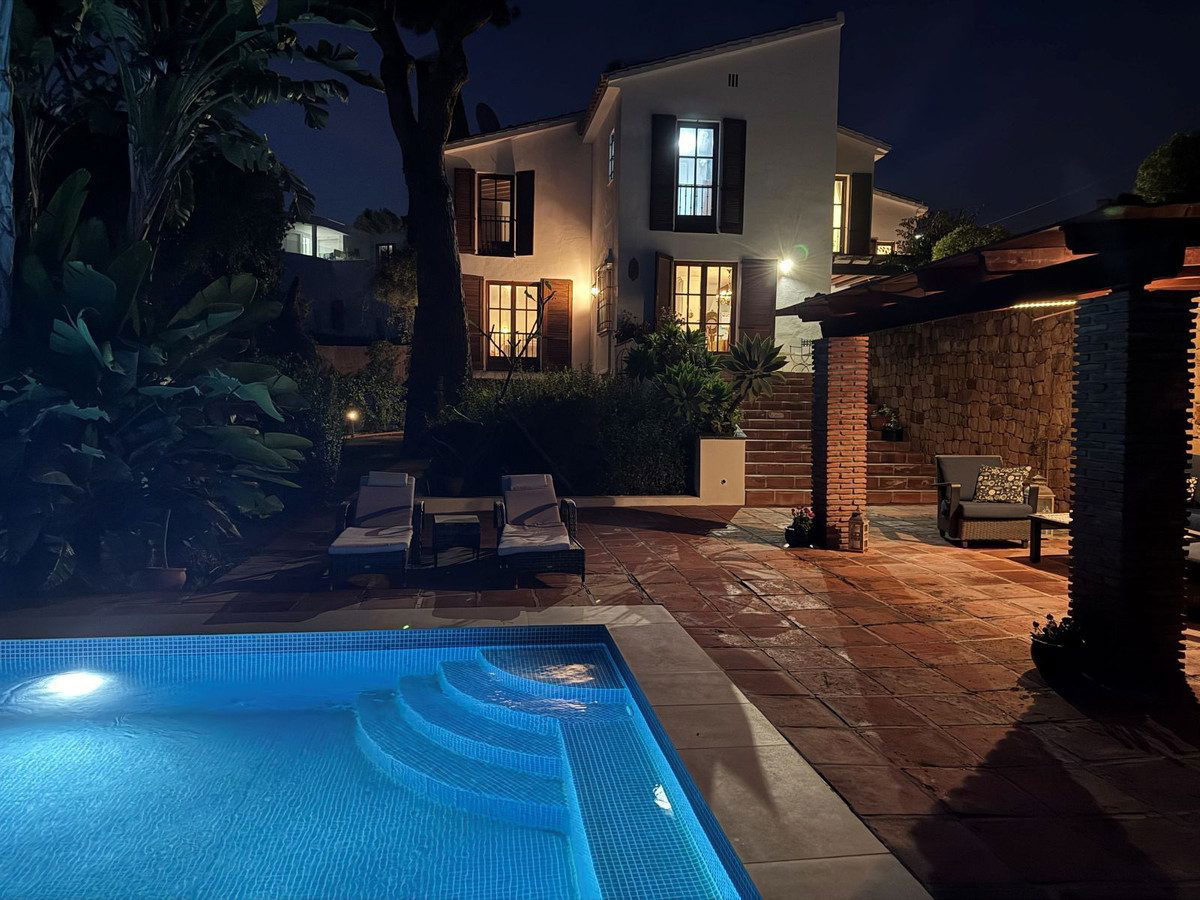 This charming south-west-facing villa renovated in 2021, is set on a generous plot of more than 2600 SQM in the highly sought-after area of Elviria, Marbella East. Offering exceptional privacy and tranquillity, the property is enveloped by mature landscaping and features a beautifully designed garden, a relaxing pool area and multiple outdoor spaces perfect for an authentic Mediterranean lifestyle.