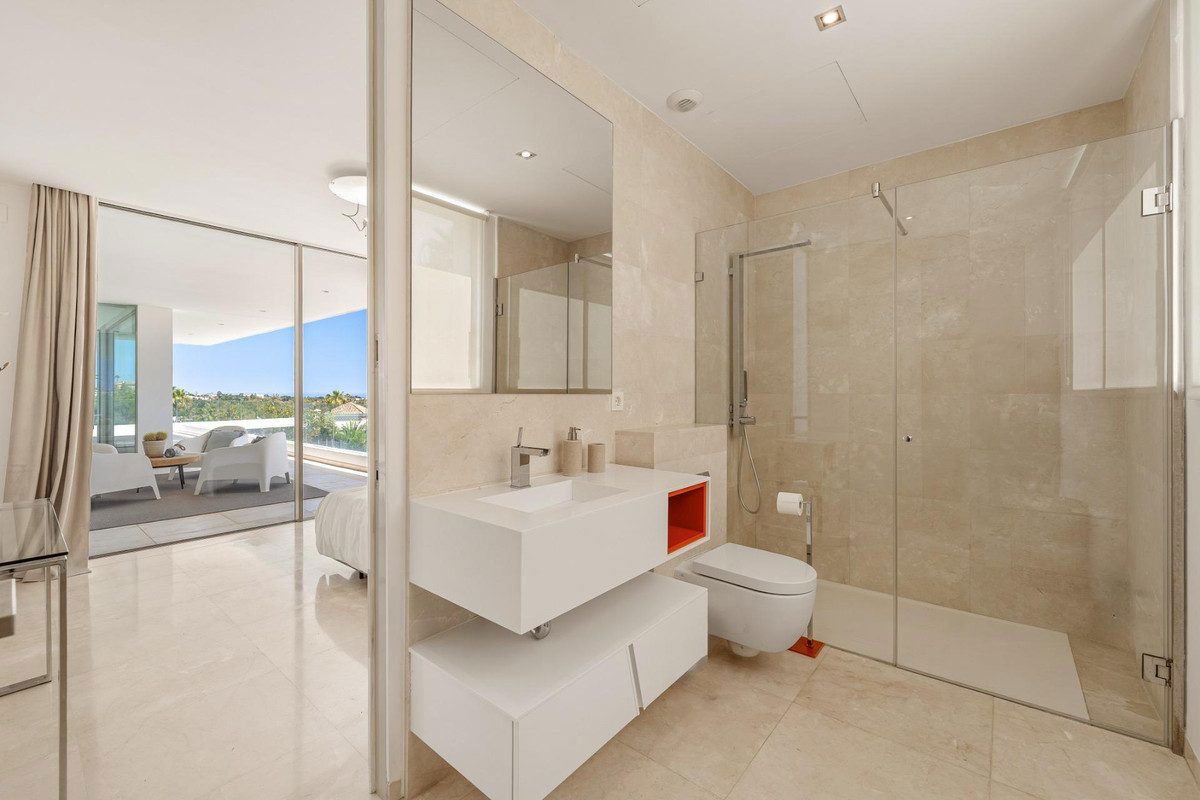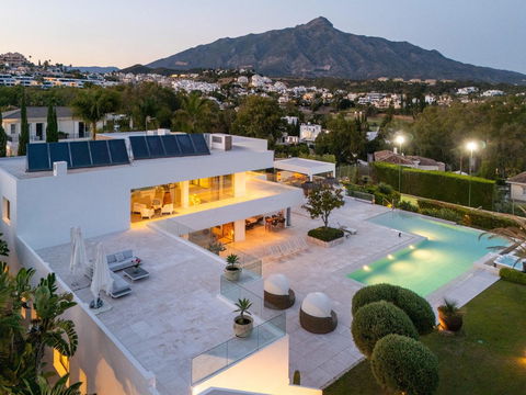 Introducing a stunning contemporary villa located in the prestigious neighbourhood of La Cerquilla, nestled in the heart of Nueva Andalucía's Golf Valley. This exclusive 7-bedroom residence sits on a generous 2,548m2 plot, offering unmatched privacy and panoramic views of Marbella's iconic La Concha mountain and the Mediterranean coastline. Its prime location places it within close proximity to top golf courses, international schools, upscale restaurants, and the vibrant Puerto Banús marina, making it an exceptional investment and lifestyle choice.
