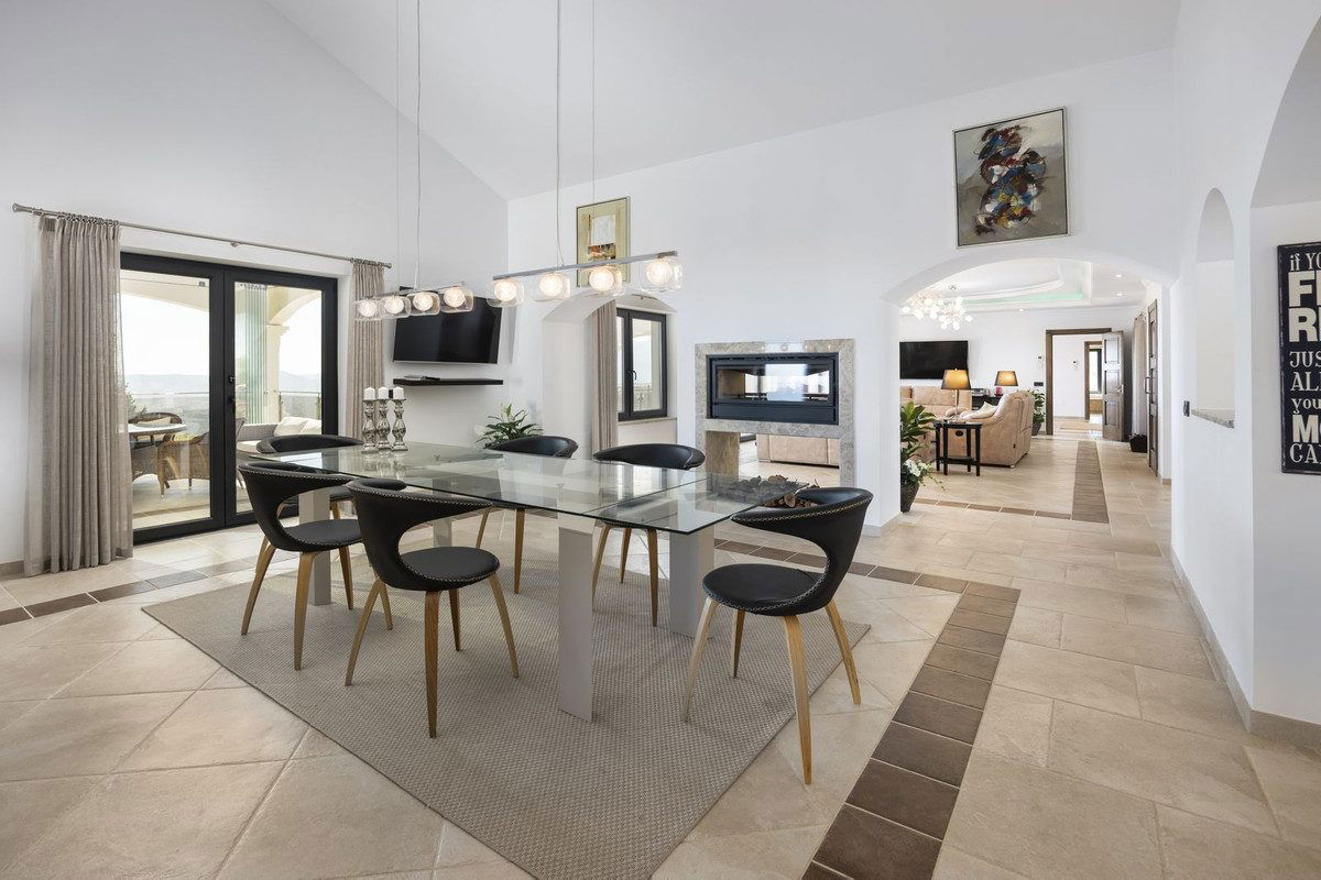 Set in the prestigious and tranquil urbanisation of Valtocado, Mijas, this impressive modern villa offers the ultimate blend of privacy, comfort, and spectacular scenery. Just 20 minutes from Málaga Airport, 15 minutes from Fuengirola, and only 5 minutes from the charming whitewashed village of Mijas Pueblo, the location is as convenient as it is serene. Perched to capture both the Mediterranean Sea and Ronda mountains, this south-facing property enjoys some of the most breathtaking panoramic views on the Costa del Sol.