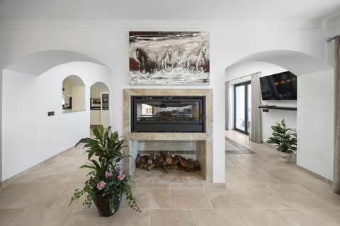 A completely independent guest annex offers a bright kitchen, living room, spacious bedroom, bathroom, and an additional utility room for electrics and water systems.