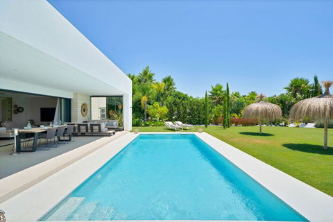 Dreaming of a sun-drenched peaceful home under the Andalusian skies? This designer villa offers tranquility and luxury all in equal measure. With 4 bedrooms and huge open plan living spaces the opportunity to enjoy as a family and socialise with friends is presented in high style. Located on the perimeter of the world-famous la Cala Golf Resort, it provides easy access to 3 Championship golf courses, a high-end luxury Spa and within a 10 minute drive to the beach.