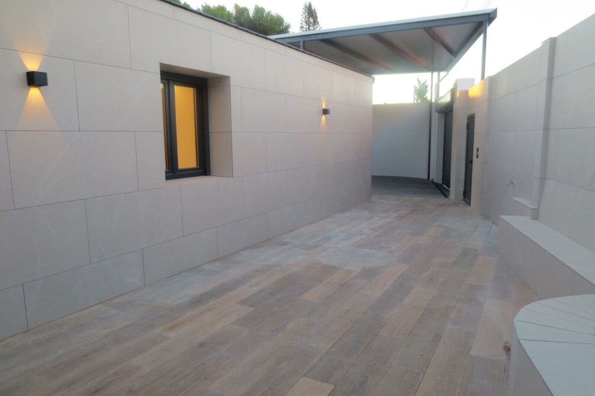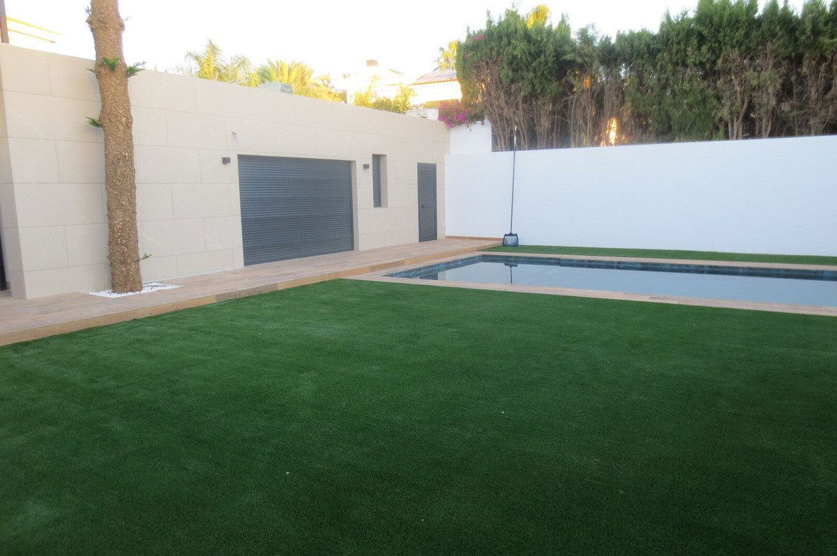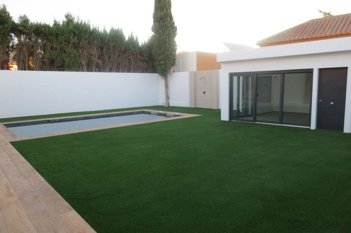 Spectacular Chalet/villa under construction located on a plot of 506 m2 in which a large garden, a private pool and a constructed area of 143m2 coexist. This impressive villa is located in the El Coto Urbanization, in Mijas Costa. It is known for its tranquility and natural beauty. It is conveniently located near Fuengirola offering easy access to all amenities such as supermarkets, pharmacy, restaurants and next to the prestigious San Francisco de Asís school. Built on one floor, the house has large terraces and an Andalusian patio with a three-spout fountain, ideal for intimate evenings. Warm living-dining room that forms a whole with the fully equipped kitchen with large-capacity wall and floor units and granite countertops. Three large double bedrooms with built-in wardrobes and an en-suite bathroom with a resin shower tray and suspended sink integrated into the cabinet. The villa is illuminated internally by LEDs in all rooms. The blinds are motorized in addition to the lighting and air conditioning integrated with Alexa or Google home. Barbecue area with bathroom and outdoor studio. Photovoltaic plant for electricity production. Exterior pergola for vehicle parking. Without a doubt an oasis to enjoy. Don't miss the opportunity to visit it!!