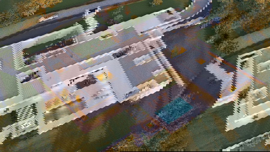Furthermore, there are several covered terraces, pergola terraces and terrace with a chill-out, heated swimming pool and an open garden storage.