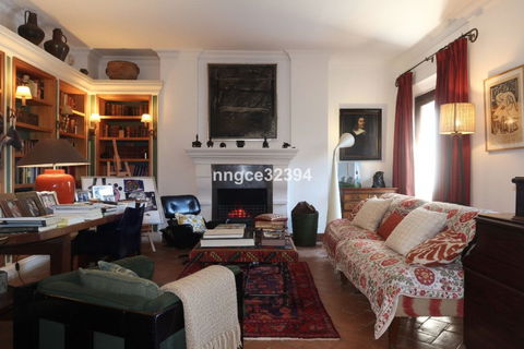 Inside, the home unfolds as a grand yet intimate Mediterranean estate, rich in character and authenticity. High ceilings, exposed beams, terracotta floors, and handcrafted woodwork provide a warm architectural canvas, while carefully curated artwork and collected pieces give the home its unmistakable identity — elegant, intellectual, and deeply personal.
