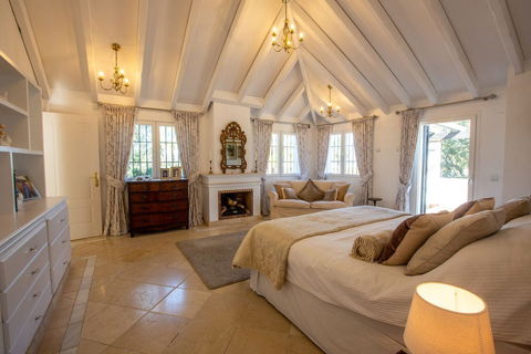 This stunning southwest-facing, two-story villa with a distinctive tower room is situated on an elevated corner plot in Sotogrande's prestigious B Zone. Offering exceptional privacy, abundant natural light, and captivating views of the Sierra Bermeja mountains, this home is designed for luxurious living.