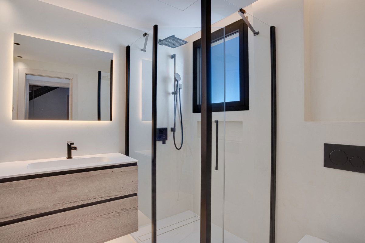 Stunning four bedroom, beachside contemporary style Villa located in Costalita, Estepona. This luxurious south facing property has been recently renovated to a high standard in 2024. With four spacious bedrooms, three bathrooms, and an additional guest toilet. The interiors are thoughtfully designed, featuring a bright living room with fireplace and an open plan kitchen. Leading on from the living area, there is direct access to a beautifully landscaped private garden and swimming pool. There is also a large private terrace from the main bedrooms offering spectacular views of the Mediterranean Sea. The lower level of the property has a fantastic multi purpose space with laundry area and could be used as an additional bedroom, gym or games room. Other features include; underfloor heating in the bathrooms, sliding glass doors, air-conditioning, private garage with one parking space plus driveway for a further three cars. Conveniently located near amenities, shops, schools, and golf courses, and just a short walk from the beach.