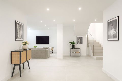 On the lower level, the apartment opens up into an expansive multi-purpose living space, currently used as a lounge but offering endless possibilities as a games room, home cinema, or family retreat.