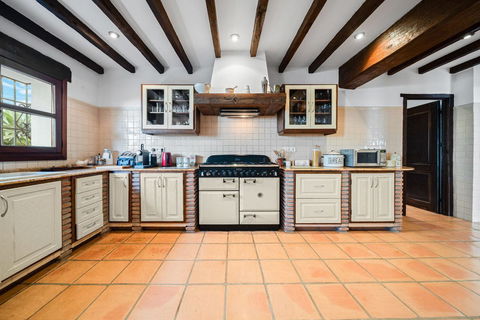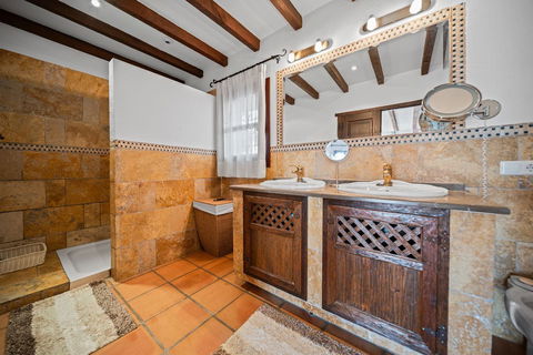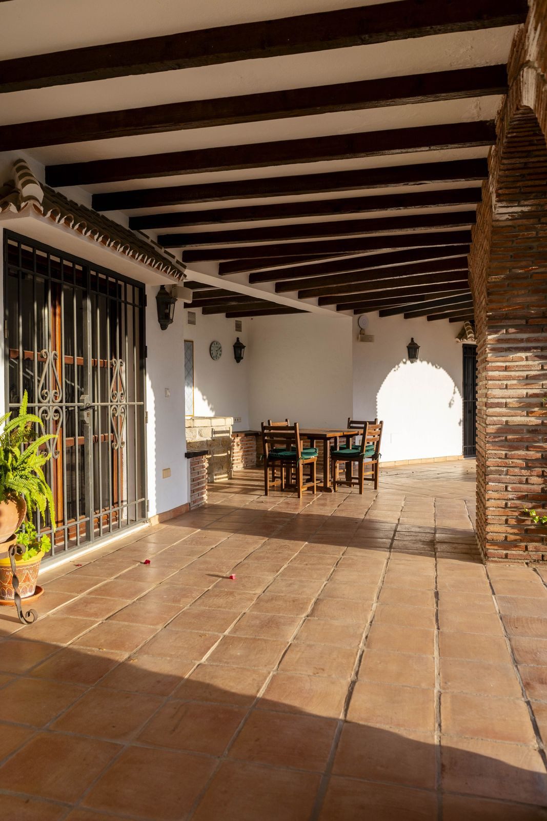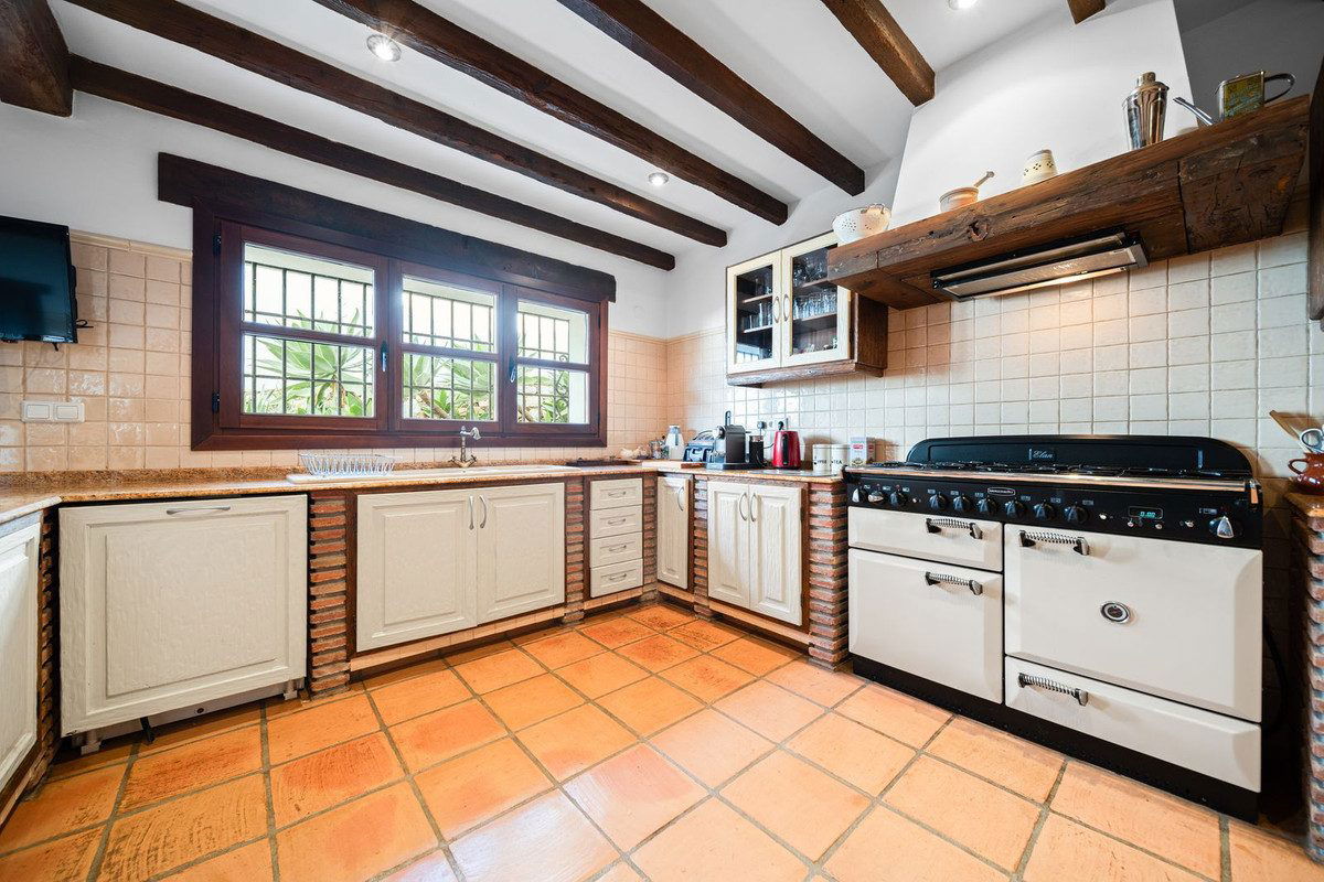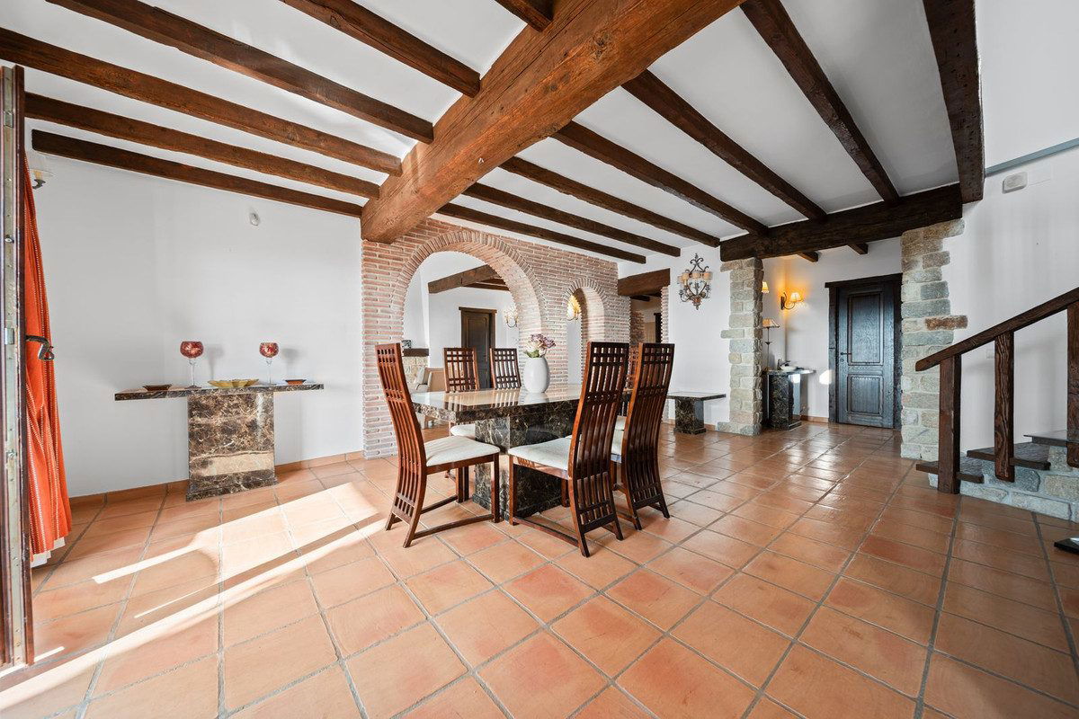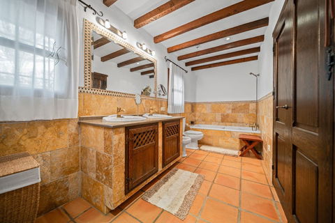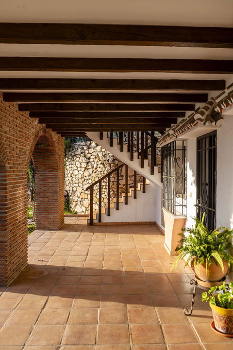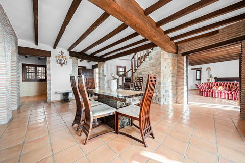 The villa is in excellent condition and captivates with its authentic Andalusian character: beautiful wooden beams, brick and stone details, and an elegant rustic finish that creates a warm and inviting atmosphere.