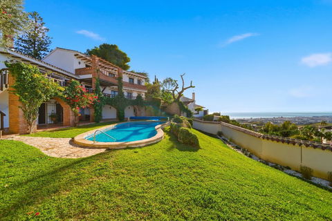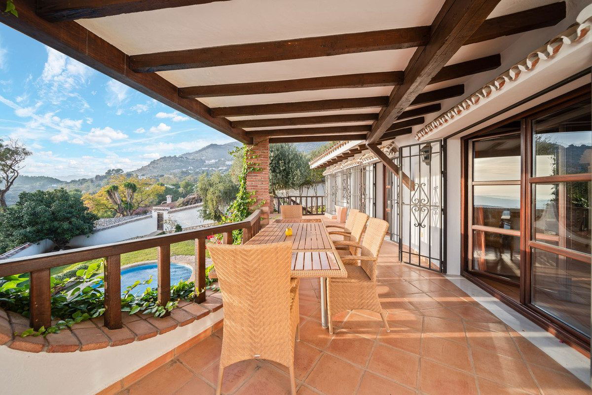 We are delighted to present this truly unique country-style villa for sale in the prestigious and sought-after urbanisation Lomas de Mijas, located just 3 minutes by car from the charming and historic Mijas Pueblo.