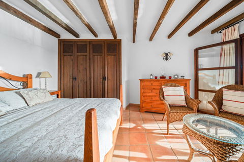 The main house features three spacious bedrooms, each with its own dressing room and en-suite bathroom. All bedrooms enjoy spectacular sea views — waking up here is a true pleasure.