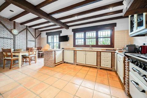 The charming country-style garden leads directly to a beautiful BBQ and outdoor kitchen area, ideal for entertaining friends and family.