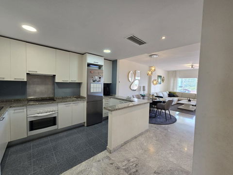The flat has a surface area of 80m² and comprises a living/dining room, open-plan kitchen, 2 bedrooms, the master bedroom has an open-plan bathroom, a full bathroom, 35m² terrace with views of the pool and sea.