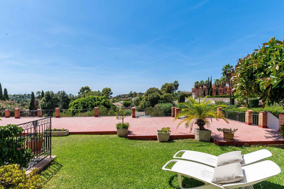 Exceptional Exquisite One Level Garden Apartment with a high interior specification offering open tropical views situated El Paraiso Alto Benahavis, enviably positioned within a prestigious Andalucian community consistently chosen by industry professionals as a top recommended golf and residential choice, designed within outstanding tropical gardens offering direct access onto the famous El Paraiso 18 hole golf course green. The property benefits from corner positioning within immaculately maintained flat tropical palm and floral gardens offering open tropical views with distant golf and sea views from the garden.
