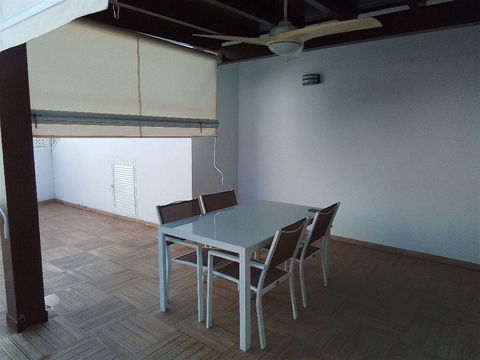 The property offers a spacious private terrace, a bright living and dining area with an open-plan fully fitted kitchen, one bedroom with an en-suite bathroom, fitted wardrobes, and hot & cold air-conditioning throughout. A private communal parking space is included for your convenience.