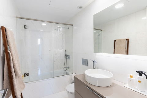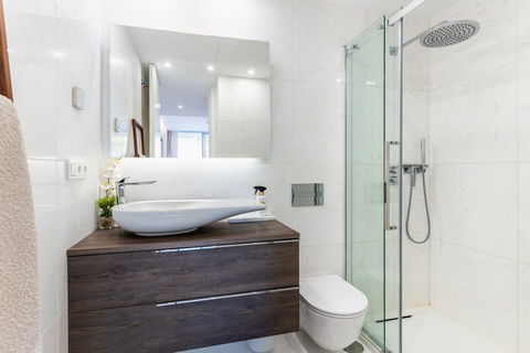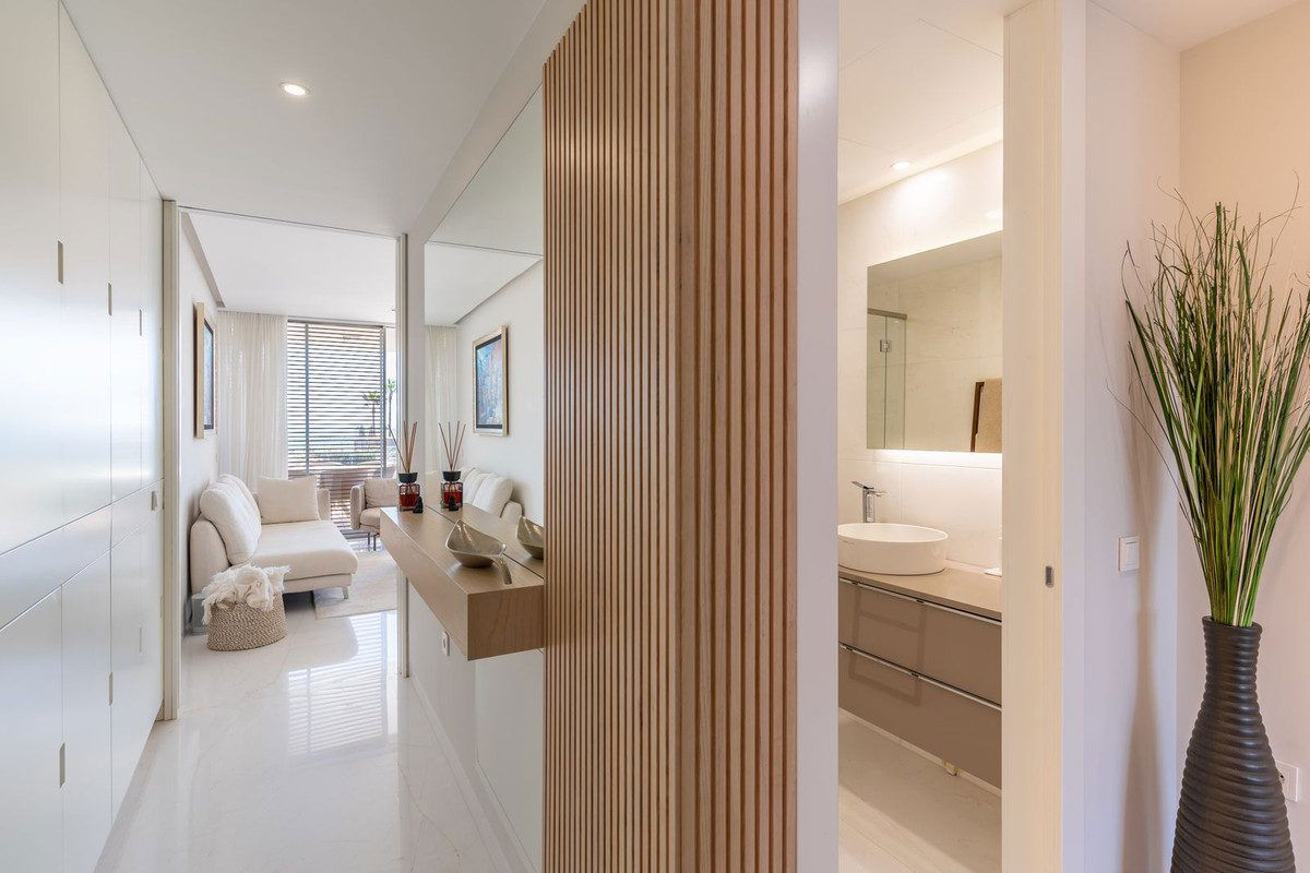 This stunning modern apartament is located in Estepona´s premier beachfront development, awarded with the first prize for ‘Best Architecture Multiple Property' at the prestigious ‘European Property Awards'. The lovely ground floor features spacious master bedroom with bathroom on suite, guest bedroom with bathroom, both with an access to the private back terrace. The owner makes a lot of upgrades like: marble flooring from Tino or modern and elegant wardrobe in master suite. The bathrooms are finished by the prestigious Dornbracht brand.