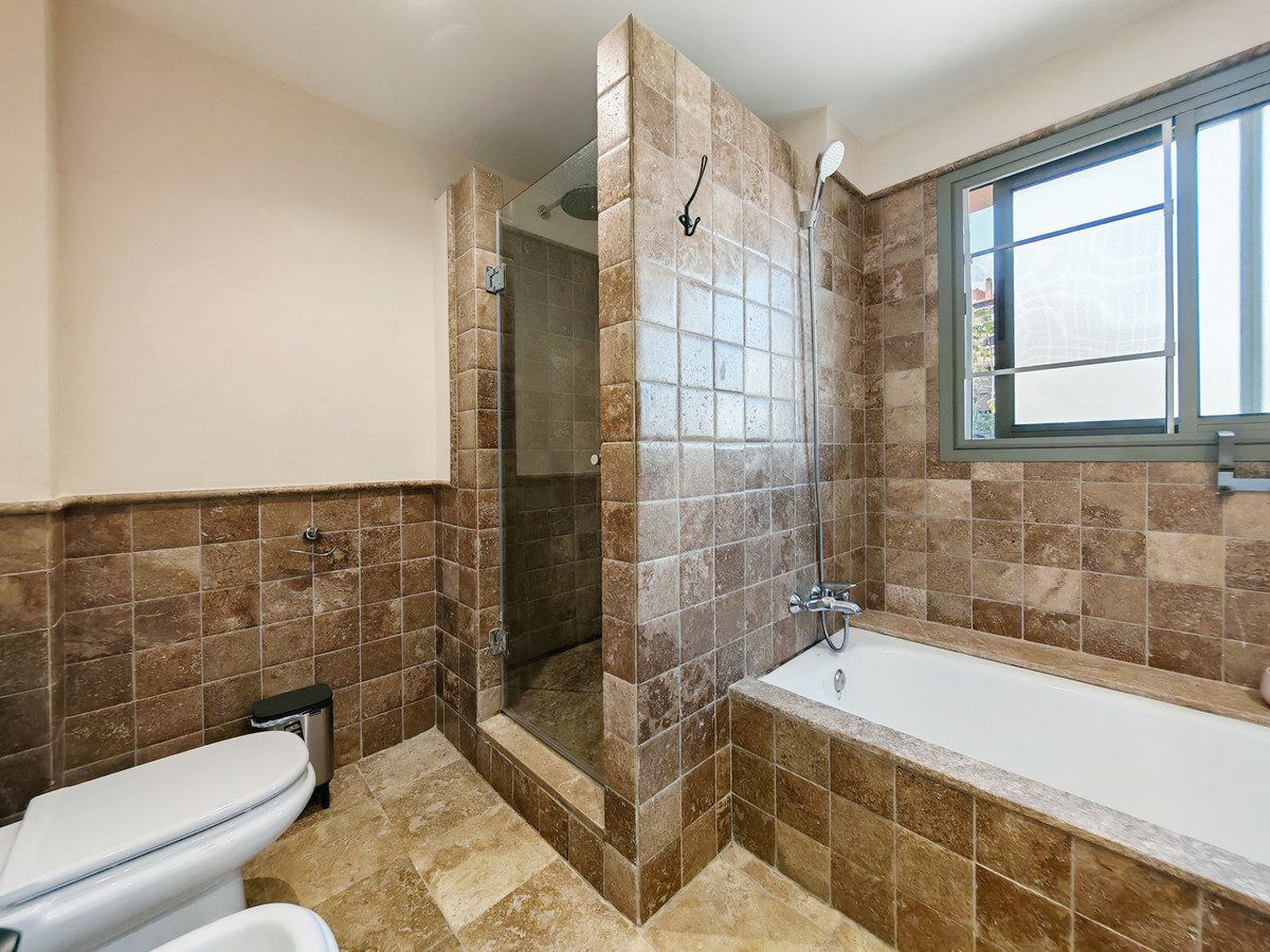 Ground Floor Apartment for sale in Benatalaya, Estepona with 2 bedrooms and 2 bathrooms, with communal swimming pool, private garage (2 parking spaces) and private garden. Regarding property dimensions, it has 112 m² built and 66 m² plot. Has the following facilities air conditioning, fully fitted kitchen, utility room, marble floors, sauna, gym, security entrance, security service 24h, private terrace, kitchen equipped, living room, mountain view, indoor pool, laundry room, internet – wi-fi, 24h service, gated community, lift, garden view, doorman, glass doors, wheelchair-accessible, recently renovated / refurbished, close to shops, close to town, close to schools, surveillance cameras and pets allowed.