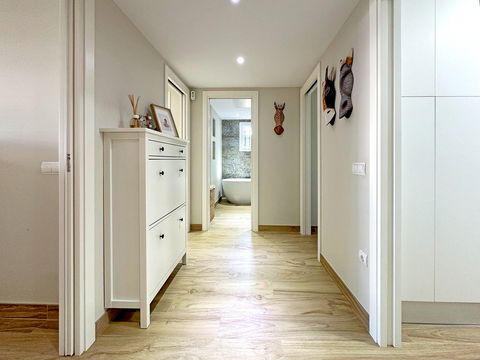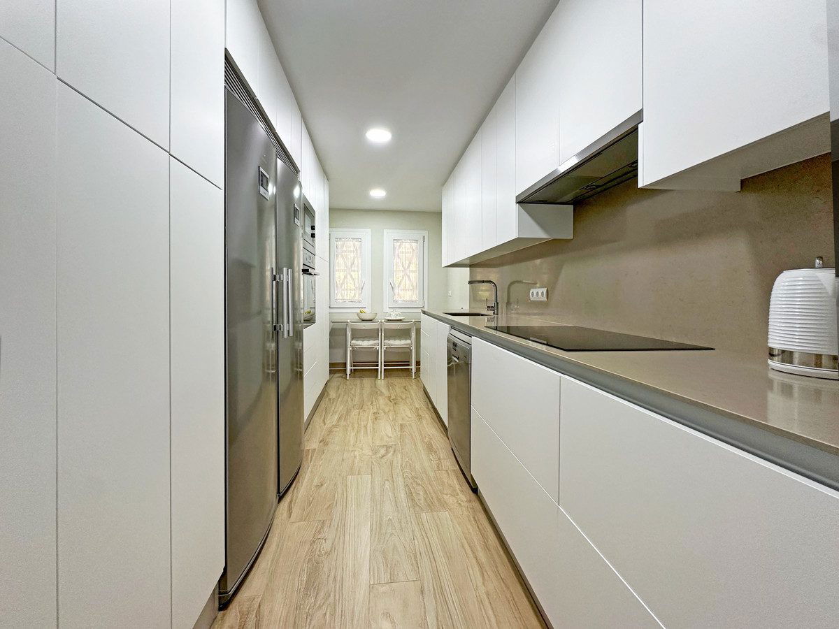 The apartment has a constructed area of 106.9 m² and an interior area of 89 m², distributed into two spacious bedrooms and two modern bathrooms, one of which is en suite. The bright and inviting living room opens onto an impressive 120 m² private terrace, perfect for enjoying outdoor gatherings, thanks to its barbecue area and panoramic views of the countryside, mountains, and communal gardens. The fully equipped and renovated kitchen is complemented by a practical utility room, while the porcelain floors, high-quality interior and exterior woodwork, and updated bathrooms reinforce the modern feel. The property, in excellent condition and adapted for people with reduced mobility, also features air conditioning, a fireplace, built-in wardrobes, and a guest toilet.