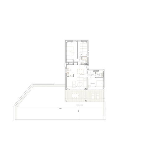 This corner unit, with a south-facing orientation and large windows, enjoys abundant natural light throughout the day. Situated on the ground floor, it features an impressive private garden of 161 m² — the largest in the complex — ideal for outdoor living all year round.