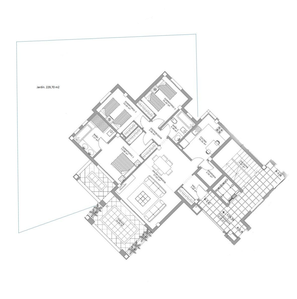 Enjoy the Andalusian sun on two terraces totaling 23 m2 and a private 229 m2 garden, lined with wood-effect ceramic tiles—your perfect spot for relaxation, gatherings, or outdoor moments.