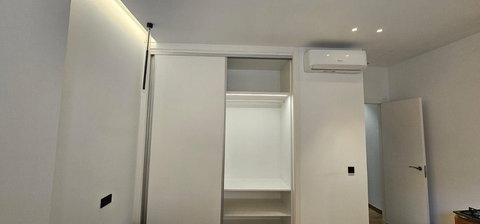 Built-in wardrobe with interior lining, drawers, and automatic lighting