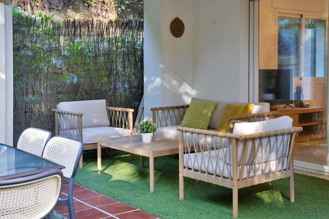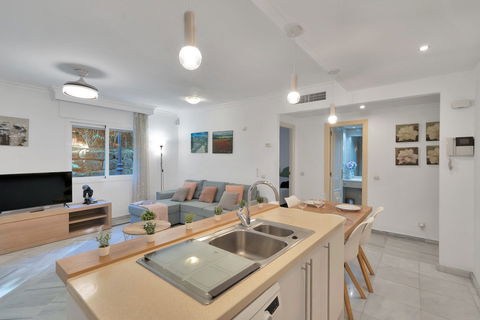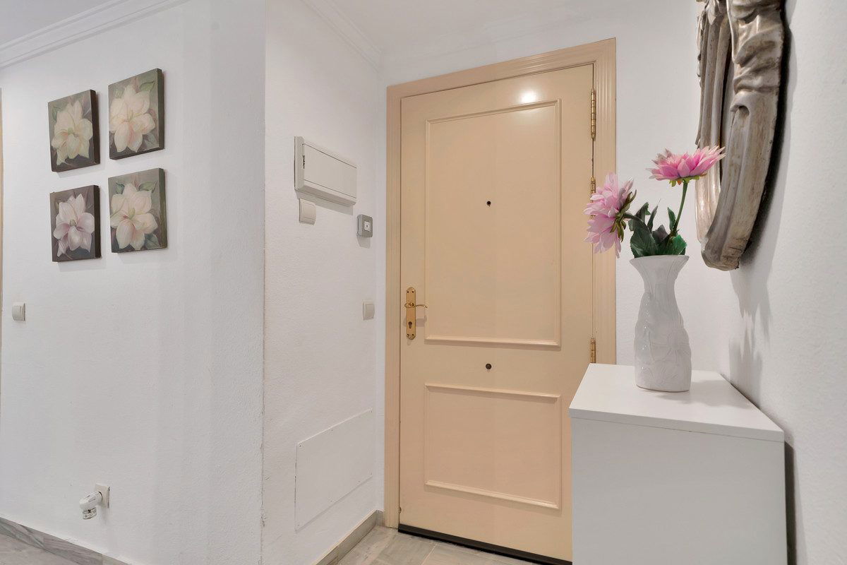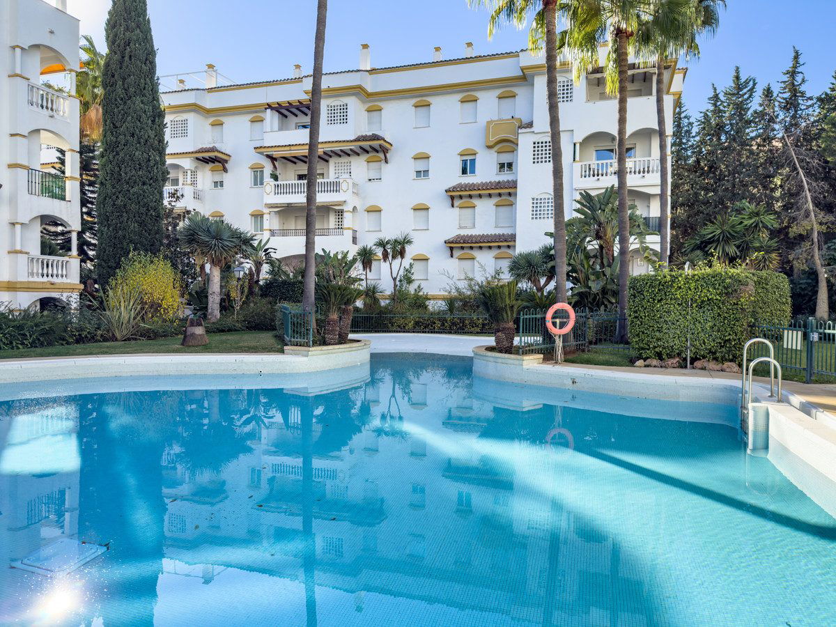 We present this beautiful property located in one of the most sought-after and prestigious areas of Marbella: the iconic Golden Mile, an enclave where luxury, comfort, and quality of life blend seamlessly.Just 800 meters from the beach, you can enjoy the Mediterranean with a pleasant 10-minute walk. The property is surrounded by all essential and high-end services: supermarkets, restaurants, national and international schools, institutes, pharmacies, bus stops, and the iconic Marbella Club and Puente Romano hotels. A privileged location that allows you to walk to the city centre and enjoy everyday life with total convenience.Connectivity is excellent: 5 minutes by car from Puerto Banús, the same distance from Marbella's town centre and Old Town, and with immediate access to the motorway. Málaga Airport is only 35 minutes away.The property is located within a gated community built in 2002 that offers security, well-maintained gardens, a communal pool, and a paddle court—making this home a gem for those seeking comfort, style, and quality.This west-facing ground-floor apartment is perfect for enjoying the afternoon sun and features a charming 20 m2 porch and private garden, providing privacy and a cosy atmosphere.The total built area of 117 m2 is distributed as follows:•Spacious living-dining room filled with natural light•Modern open-plan kitchen, completely renovated in 2023•2 bedrooms and 2 full bathrooms•Private garden, ideal for relaxing or entertaining guestsAdditionally, it includes an underground parking space with direct access to the apartment via a lift, offering maximum convenience. The property is equipped with air conditioning, heating, and is adapted for people with reduced mobility.A unique opportunity thanks to its PREMIUM location on the Golden Mile. Perfect as an investment, holiday home, or permanent residence. High rental profitability due to strong demand in the area throughout the year. Ideal for those seeking to elevate their quality of life or invest in one of the most promising areas of the Costa del Sol.A property with Mediterranean charm, where modern comfort meets the exclusivity of Marbella.The abbreviated information document is available. Expenses: Taxes (ITP or VAT+AJD) + Notary and Land Registry fees.BRF