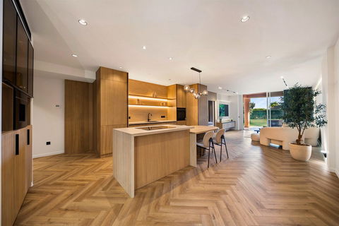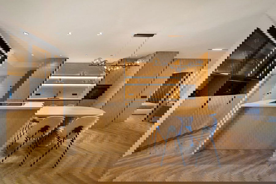 Inside, three spacious bedrooms provide serene sanctuaries, including a sophisticated master suite with elegant finishes and direct garden access. Premium materials and bespoke design details enhance every corner, from the modern kitchen to the refined living areas, all crafted with impeccable attention to detail.