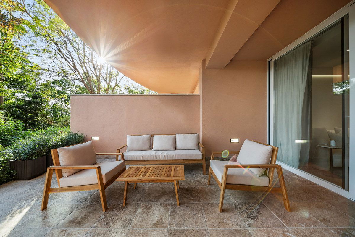Bathed in natural light from its southwest orientation, this 130 m² residence has been thoughtfully reimagined to the highest standards, offering a seamless blend of contemporary design and timeless elegance. The open-plan layout flows effortlessly into a spacious 32 m² terrace and a beautifully landscaped 45 m² private garden — perfect for al fresco dining, morning coffee, or unwinding as the sun sets over Marbella's Golf Valley.