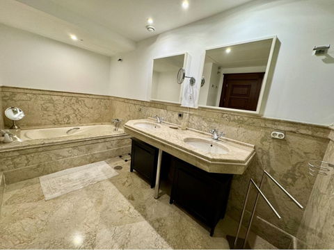 Apartment is fully furnished with good quality Italian furniture. Glassed terraces, marble cream color floors.