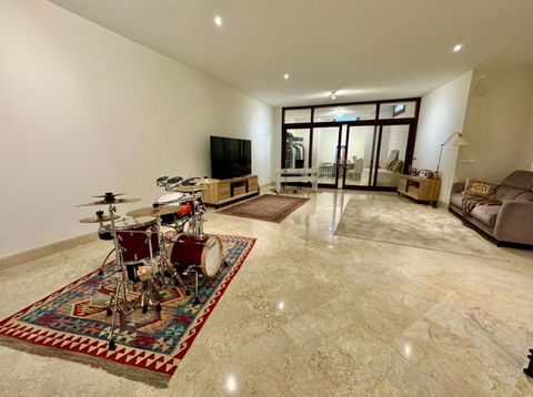 Apartment has semi basement where there is another spacious living area with soundproofed music area, an office and guest bathroom.