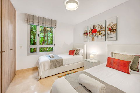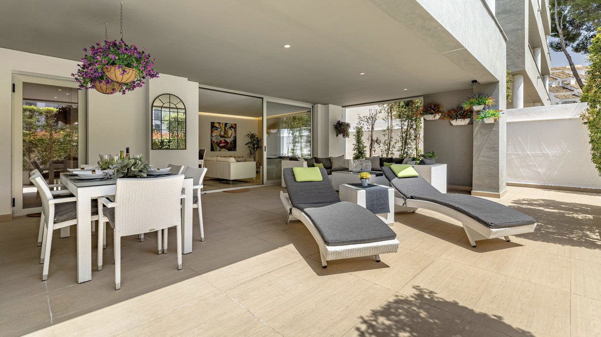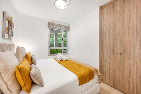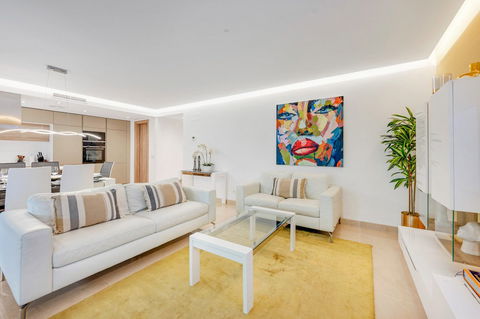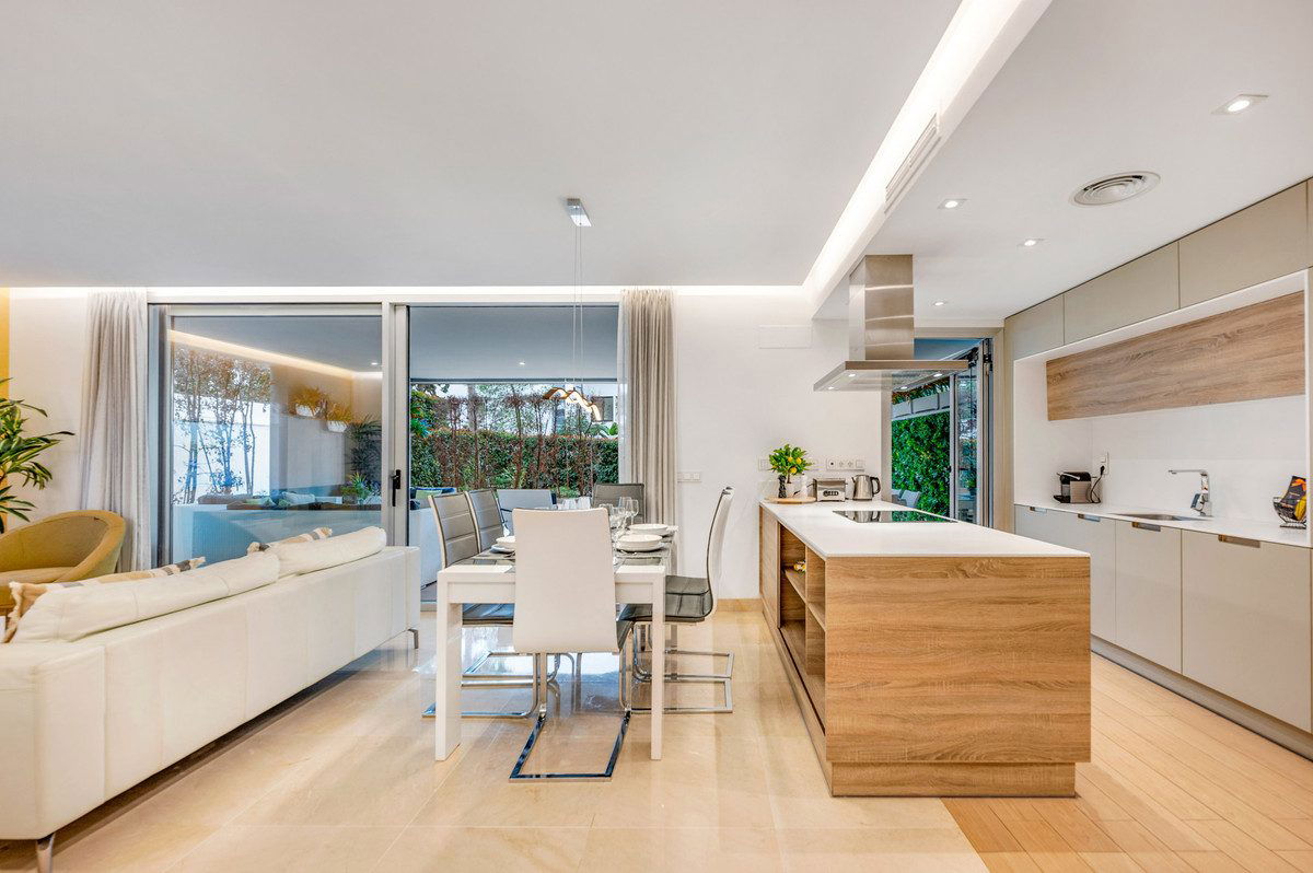 This exclusive, spacious 3-bedroom, 2-bathroom ground-floor apartment is located in a new development within walking distance of the vibrant Puerto Banús. Situated in a gated and secure community, the property offers access to a communal swimming pool and well-maintained common areas.