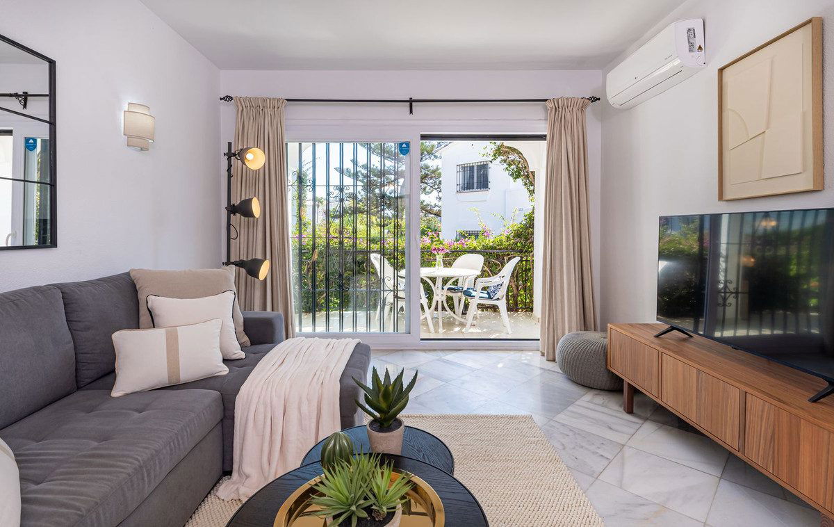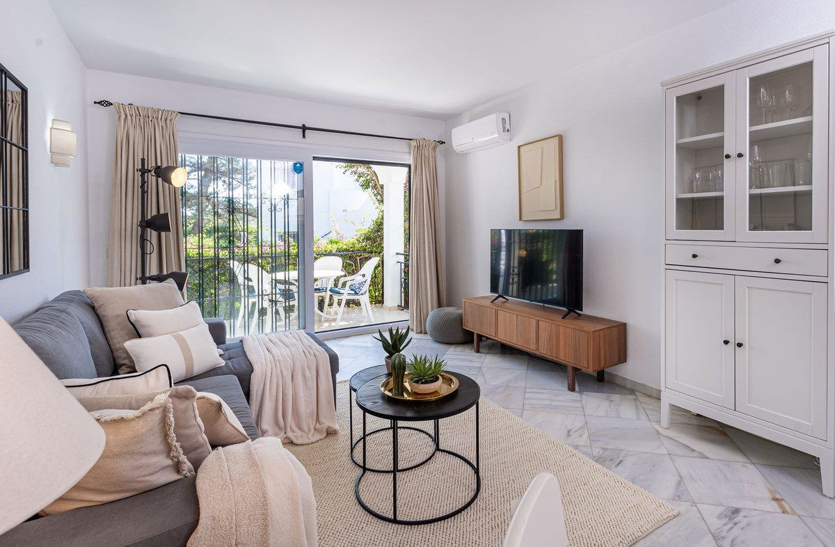 Excellent opportunity to acquire a one level garden apartment with a spacious storage room/Andalucian courtyard in El Paraiso Cortes Del Golf, Benahavis.