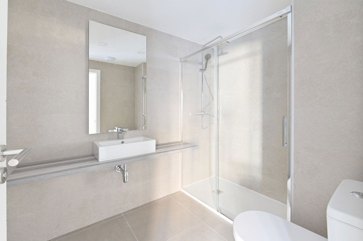 The property has 3 bedrooms with fitted wardrobes and 2 full bathrooms, one of which is en suite in the master bedroom, a living room leading to a large 24.88 m² south-facing terrace with unobstructed sea views.