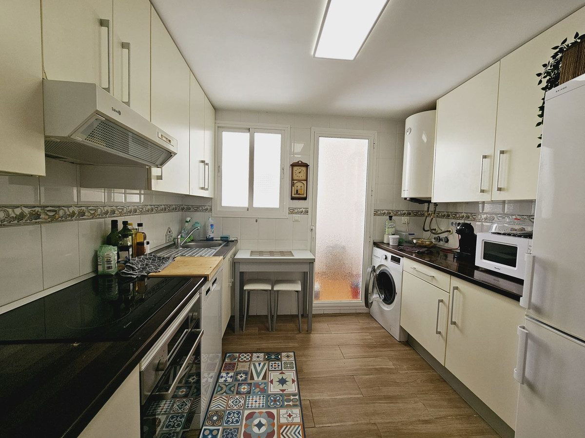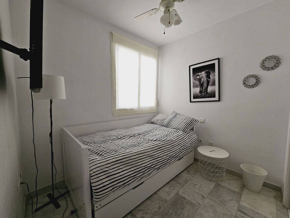 In short, this property offers a lot. Beautifully furnished, with a chic terrace with spectacular views over the coast and golf course, underground parking and storage room. An ideal place to live, in a community with well maintained tropical gardens and communal pool. Low running costs: Community fees:€70/month, IBI and Rubbish €430. All the blocks are currently being updated and painted white. THIS AN EXCELLENT INVESTMENT OPPORTUNITY. Viewing highly recommended.
