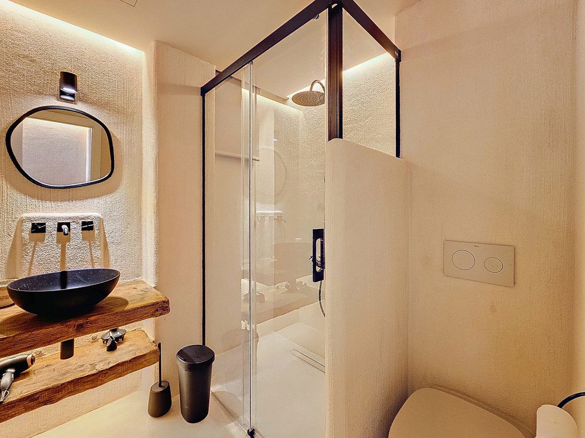 Fully refurbished in a Boho rustic style, and in a frontline beach building in the historic Old Town of Estepona is where you will find this 2 bedroom,1 bathroom apartment with an open plan kitchen, perfect as a holiday apartment and rental opportunity, as it already has a Tourist License. The location is unbeatable, you have all you want from the Old Town just steps away, and the Rada Beach almost immediately as you step out the main entrance of the building. Situated on the first floor with lateral sea views from the 2 private covered terraces that face to the plaza square where you have several restaurants, and ice cream shop just below, as well as beach Chiringuito steps away. It has central air conditioning, and built in wardrobes. With easy access from the main highway and entrance of Estepona, and underground public parking just below the building, with all shops and restaurants at hand, and just a 15min stroll along the new pedestrian beachfront promenade to the lovely port of Estepona. Wonderful opportunity to purchase your holiday apartment!