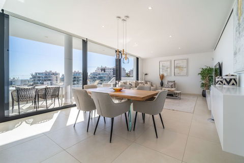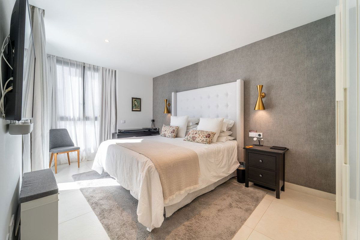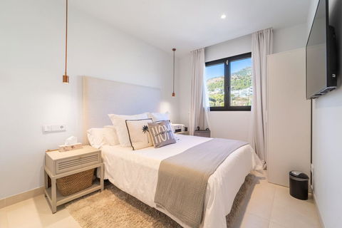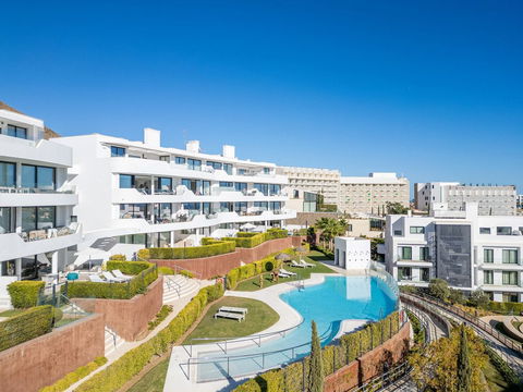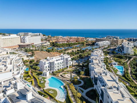 Elegant south facing apartment, in the exclusive urbanization of Higuerón West, with 3 bedrooms, 2 bathrooms, spacious living-dining room, open plan kitchen fully furnished and equipped with electrical appliances from BOSCH, laundry area with washing machine/dryer, large terrace of 26m2 with amazing panoramic sea views. Master bedroom with closet, open plan ensuite bathroom and access to a small terrace. Air conditioning hot and cold, video intercom, domotic system, built-in wardrobes in all bedrooms and hall, pre-installation alarm system, under floor heating in bathrooms. Includes two parking spaces and one storage room.