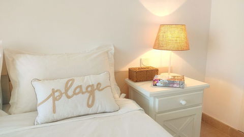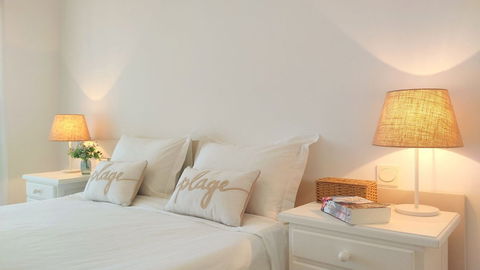 Decorated in a Scandinavian style with delicate beach-inspired accents, the home feels bright, fresh, and serene. The open-plan living area opens onto a private terrace offering partial sea views and lovely mountain vistas, overlooking a large communal pool and a separate children's pool—perfect for family enjoyment or quiet relaxation.
